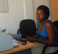 Ishimwe Solange akora akazi ko gufotora no kwandika kuri mudasobwa mu Karere ka Rubavu: