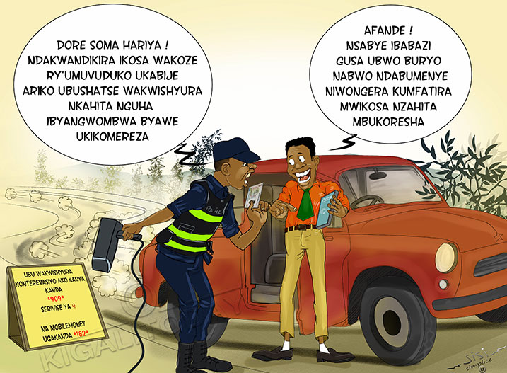 Ruswa yaracitse Rwose muri Police, cyangwa irimo cucika ku buryo bugaragara, turabizi Polisi yarayihagurukiye,Ntihashobora gushira n’icyumweru Polisi itagaragaje abantu yafashe bagerageza guha Abapolisin ruswa mu mirimo yabo bakora buri munsi. abantu rero nabagira inama yo kuva ku ka Cyera bakareka gutanga cyangwa Kwakira Ruswa!turashima kandi uburyo bw’ikoranabuhanga Polisi yashyizeho byo kwishyura Conterivansiyo ako kanya, aho umupolisi atagira aho ahurira n’amafaranga. Ibyo nabyo bizatuma ruswa yo mu muhanda icika burundu.