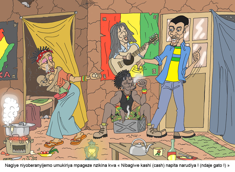 Muti Kanaka aho ntucoma? (ntunywa urumogi?) Wapi kabisa ! Narabibabwiye kenshi, nshaka kubaho neza mu minsi iri imbere kandi ibintu byo kurya amabule (boules - udupfunyika tw’urumogi) ntago bijya mbere (nta mushinga urimo) kuko kwanza bikugira ipanci (umurwayi wo mu mutwe) utareba neza ukaba wava no ku biryo! (wanapfa!) Ikindi kandi amaherezo ya Pushayi n’izindi Ganjapulanta (Ganja planter – abakoresha urumogi) zose nta handi uretse kw’ishene ya dizinefu (1930)…