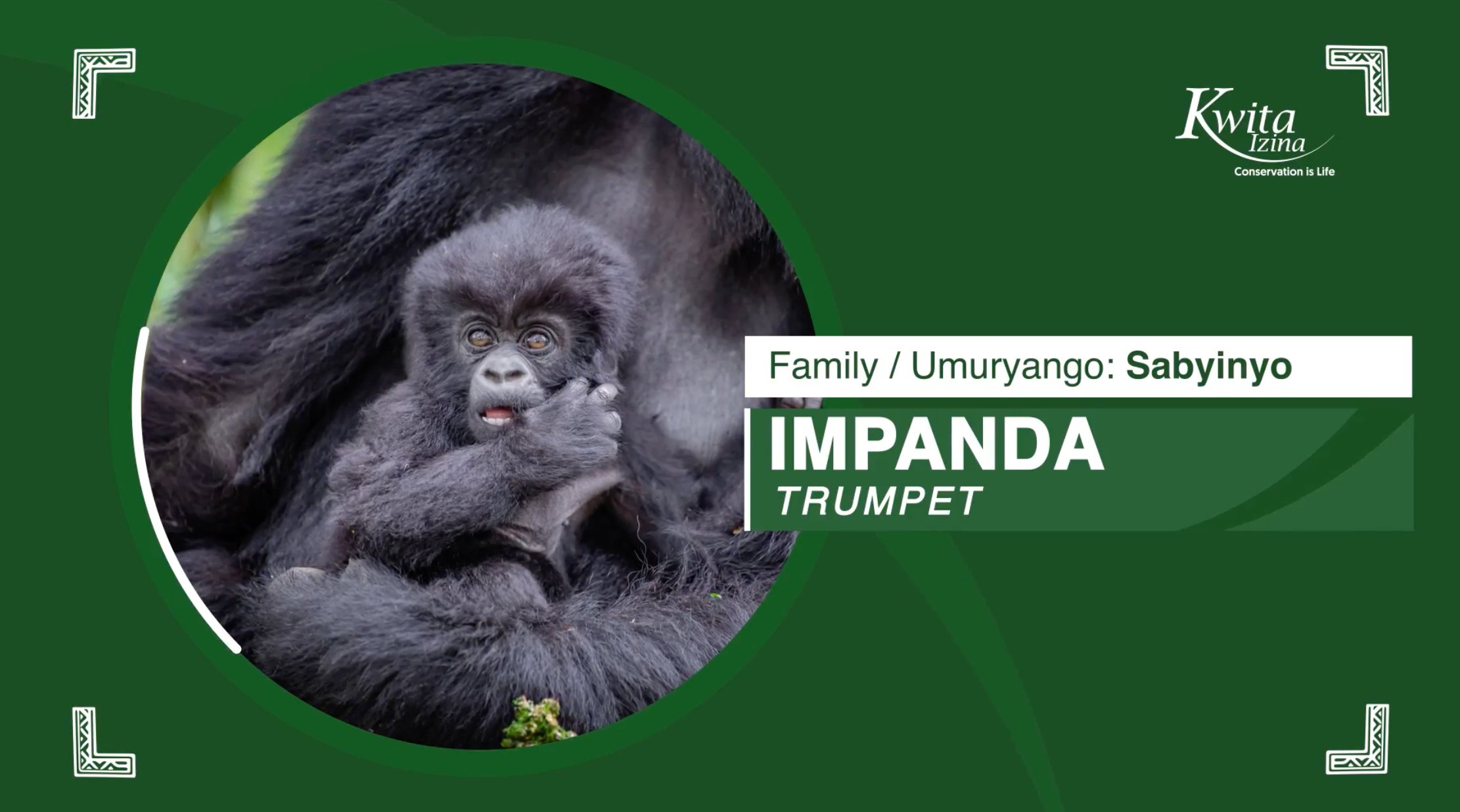 Abana b’ingagi biswe amazina, ni abo mu miryango 12 y’ingagi ari yo Noheli , Musilikali, Ntambara , Mutobo , Igisha, Susa, Kureba , Pablo, Sabyinyo, Muhoza, Amahoro n’uwa Hirwa.