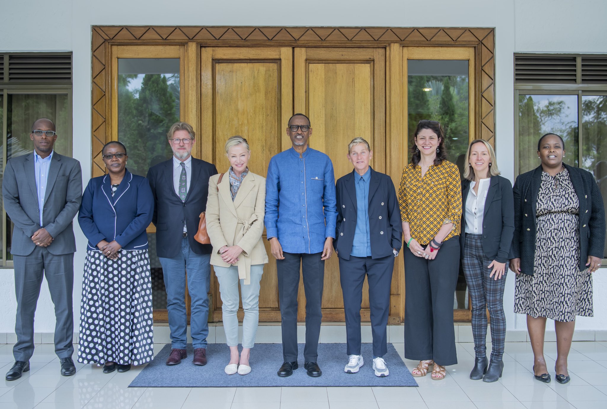 Perezida Paul Kagame, kuri uyu wa Gatatu tariki 08 Kamena 2022, muri Village Urugwiro, yakiriye Ellen DeGeneres na Portia de Rossi ndetse n’itsinda bari kumwe mu Rwanda, aho batashye ku mugaragaro ikigo cy’ubushakashatsi ku kubungabunga ingagi.