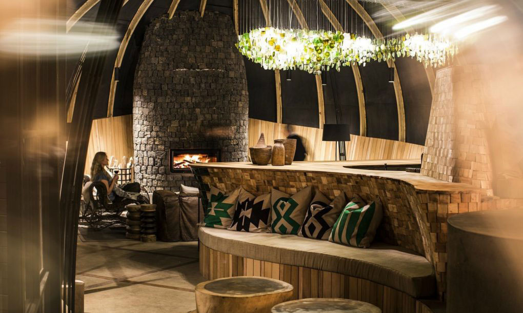 Igishushanyo mbonera cy’imbere muri Bisate Lodge cyakozwe n’umuhanga mu by’ubwubatsi, Caline Williams-Wynn, wo muri Cape Town abifashijwemo n’Umunyarwandakazi Teta Isibo, nyiri “Inzuki Designs”.
