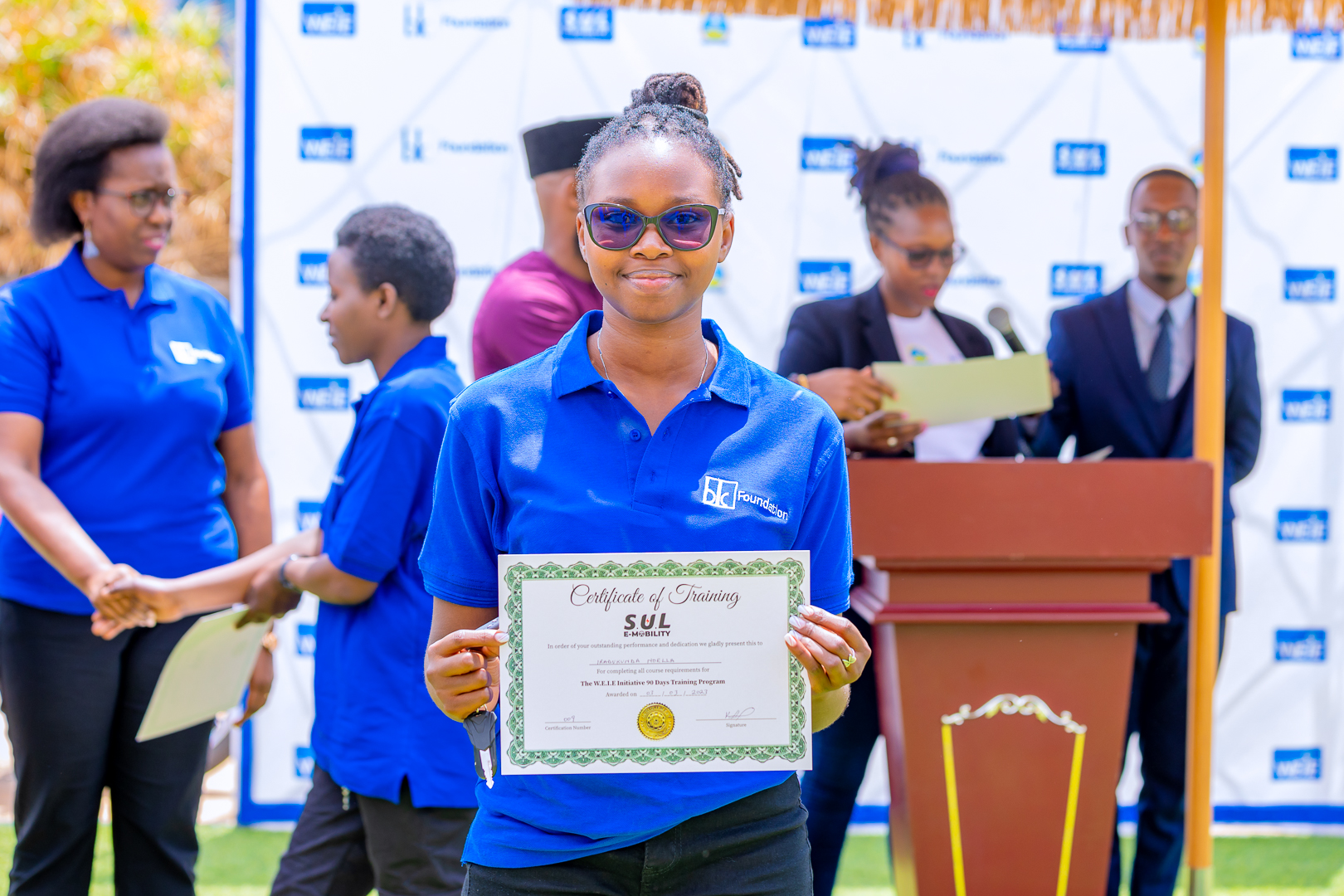 Abahawe moto bamaze igihe kigera ku minsi 90 bahugurwa ku bijyanye no gutwara moto, n’ubumenyi bw’ibanze mu kuzikanika, izo bahawe zikaba ari izikoresha amashanyarazi mu rwego rwo kurengera ibidukikije.