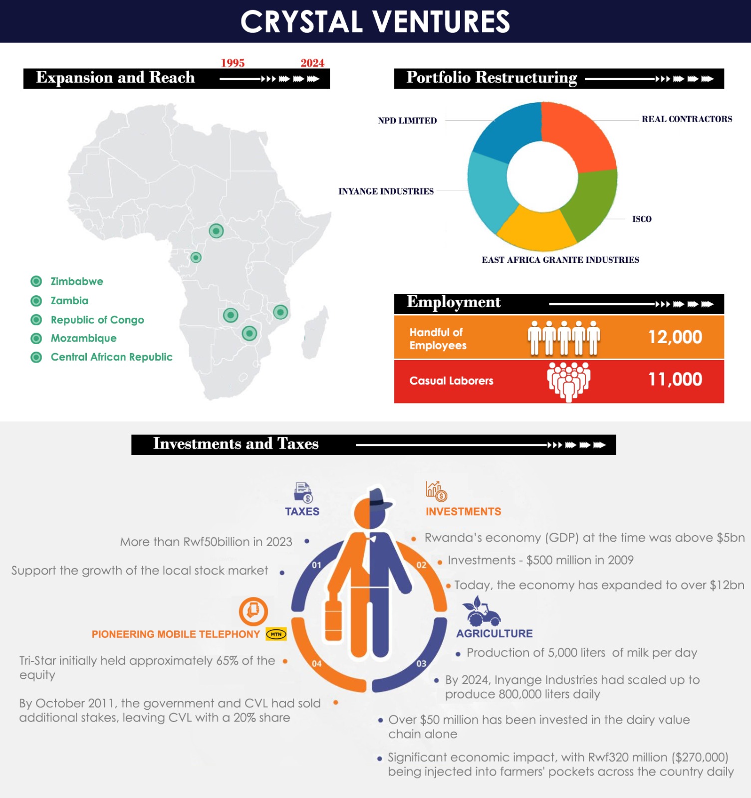 Umuryango FPR Inkotanyi wari uyoboye Guverinoma y’Ubumwe bw’Abanyarwanda wari ufite ibibazo byinshi birimo kongera kubaka Igihugu guhera ku busa. Aho rero ni ho sosiyete yitwaga ‘Tri-Star Investments Limited’ ari yo yaje guhinduka ‘Crystal Ventures Limited (CVL)’ yagize akamaro gakomeye.