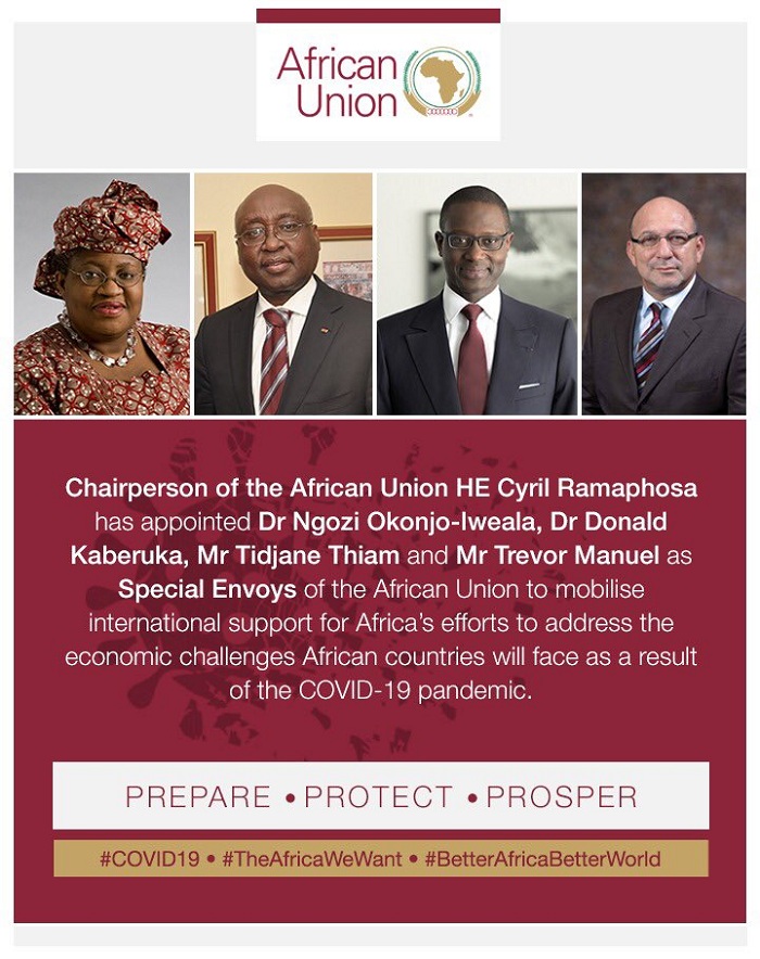 Umuyobozi w’Umuryango wa Afurika yunze Ubumwe, Cyril Ramaphosa, yashyizeho itsinda rishinzwe gukorera ubuvugizi umugabane wa Afurika mu ruhando mpuzamahanga, kugira ngo amahanga atere inkunga ubukungu bwa Afurika burimo guhungabana biturutse ku cyorezo cya #COVID19.
