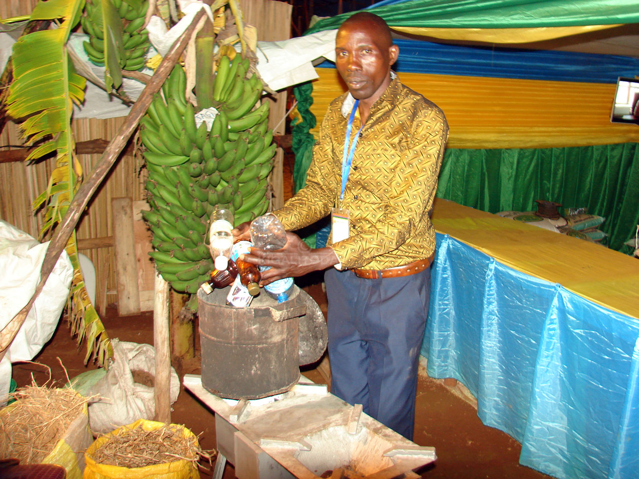 Afite imashini isya ibyo byatsi bikavamo ifu akayivangamo kore yikorera avana mu mashashi no mu macupa ya parasitiki, yavuyemo amazi cyangwa umutobe, nyuma yo kuyashongesha.