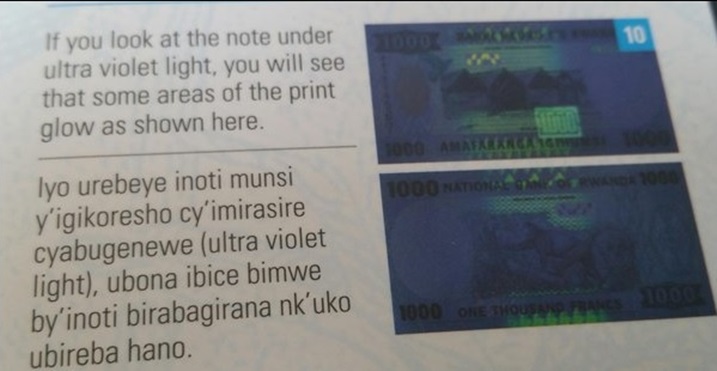 Urebye iyi noti nta tandukaniro rinini hagati yayo n’y’indi y’i 1000Frw isimbuye, kuko zose ziri mu ibara ry’ubururu.