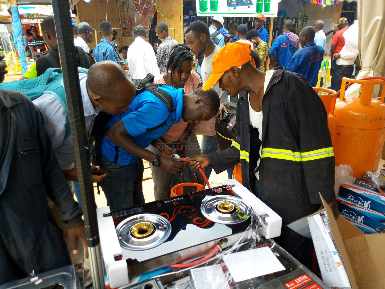 Ahacururizwa gaz n’amashyiga muri Expo 2017 uhasanga abantu benshi babigura, bakavuga ko iborohereza akazi ndetse bakanarengera n’ibidukikije kuko ngo ibikomoka ku biti bihenze.