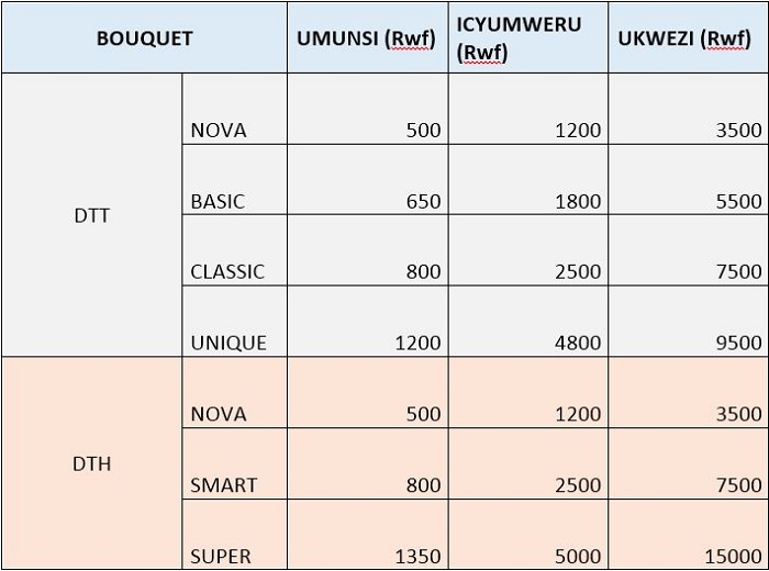 • Decoderi ya DTH (Dish/Parabolique): iri ku mafaranga 30,000Rwf StarTimes ikaguha n’ukwezi kwa Super bouquet ku buntu.