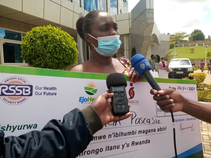 Pascasie Mukanziga utuye mu Murenge wa Kamonyi, akaba umwe mu bashyikirijwe sheki ku mugaragaro, avuga ko umugabo we yari amaze umwaka umwe n’igice yizigamira amafaranga ibihumbi bibiri ku kwezi muri Ejo Heza, mbere y’uko yitaba Imana mu kwezi kwa Mata, muri uyu mwaka wa 2021.