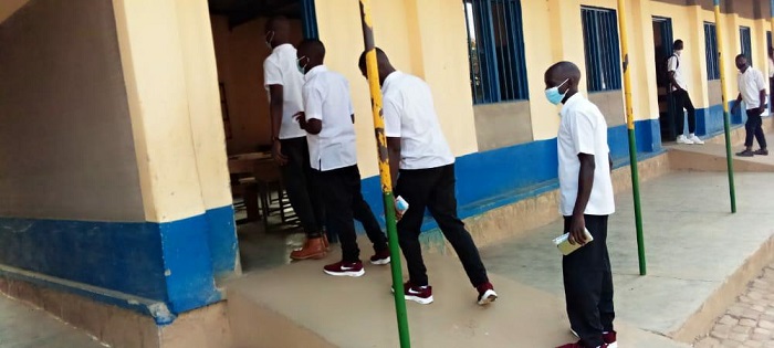 Ati “Twarabigishije bose barabizi kwambara neza agapfukamunwa, bafite imodoka ibavana kuri gereza, tukabakangurira kugira isuku, iyo bagiye kwinjira mu ishuri bakaraba umuti usukura intoki, baba bamaze gukora ikizami bakonger bagakaraba uwo muti bagasubira mu modoka bakajya kurya iwabo kuri gereza barangiza bakagaruka bagakora ikizamini kandi iyo birangiye nimugoroba ntibashobora kwinjira tutongeye kubapima”.