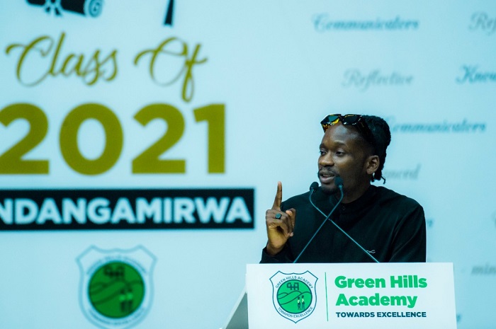 Umunyamuziki w’Umunyanigeriya witwa Oluwatosin Ajibade uzwi nka Mr Eazi, ari mu bitabiriye ibirori byo gutanga impamyabumenyi ku banyeshuri barangije kwiga muri Green Hills Academy.