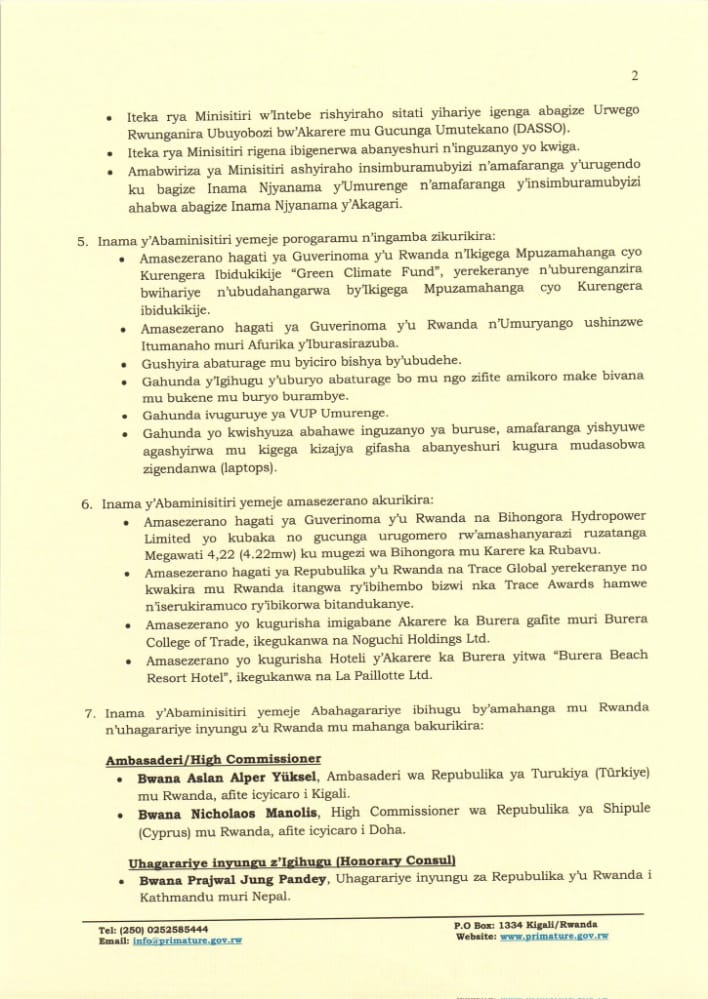 Reba ibindi muri iri tangazo ry’Ibyemezo by’Inama y’Abaminisitiri: