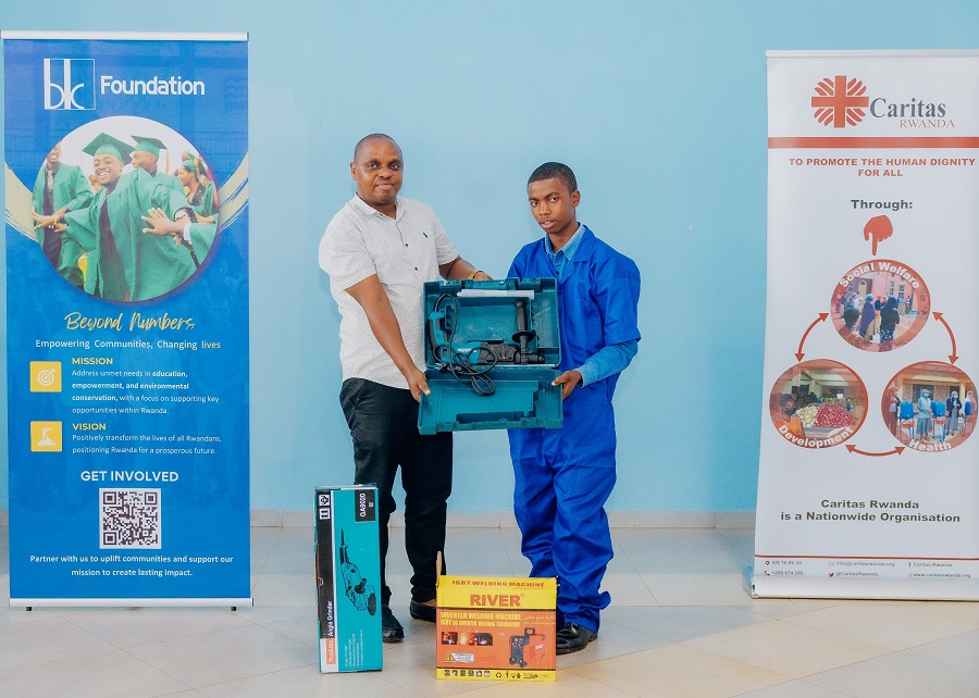 Abanyeshuri 40 bacikirije amashuri yisumbuye bakagira amahirwe yo kurihirwa imyuga itandukanye n’umushinga ‘Igire Gimbuka’ ushyirwa mu bikorwa n’umuryango Caritas Rwanda ubitewemo inkunga n’umuryango BK Foundation, bahawe ibikoresho bizabafasha guhita bajya ku isoko ry’umurimo.