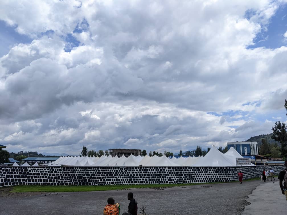 Ikibuga gisanzwe gikinirwamo umupira w’amaguru cy’iyi Stade cyatewemo amahema menshi abantu bitabiriye ibyo birori bicaramo, haragaragara abahawe imirimo itandukanye yaba ijyanye no gusukura umucaca, gukwirakwiza amashanyarazi no gushyiraho imizindaro n’ibikoresho binini bigaragaza amashusho, n’indi mirimo ijyanye no kunoza isuku yaho kugira ngo ibyo birori bigende neza.