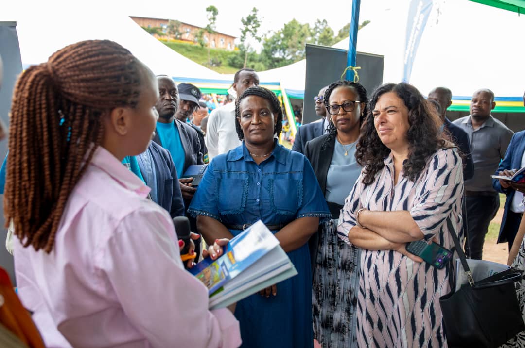 Minisitiri w’Uburinganire n’Iterambere ry’Umuryango(MIGEPROF), Consolée Uwimana, ari kumwe n’Umuyobozi Mukuru wa NCDA, Assoumpta Ingabire ndetse na Ambasaderi w’Umuryango EU mu Rwanda, Belen Calvo Uyarra, basuye ingo mbonezamikurire y’abana bato mu Murenge wa Nyamiyaga, banafatanya n’ababyeyi kubagaburira.