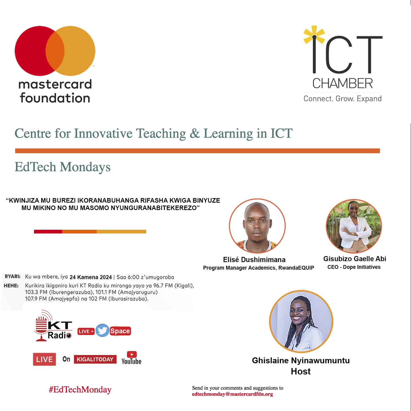 Ikiganiro EdTech Monday cya Master Card Foundayion cyo kuri uyu wa 24 Kemena 2024, gitambuka kuri KT Radio n’imbuga nkoranyambaga za Kigali Today, kiragaruka ku buryo mu Rwanda hatezwa imbere ikoranabuhanga mu burezi binyuze mu mikino.