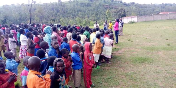 Yibukije abana bose kandi kugira isuku, agira ati “Amazi ni mwe muyavoma. Nubwo mutagura isabune, ababyeyi mujye muyibasaba, hanyuma mwoge, mumese imyenda, mube abana bafite isuku”.