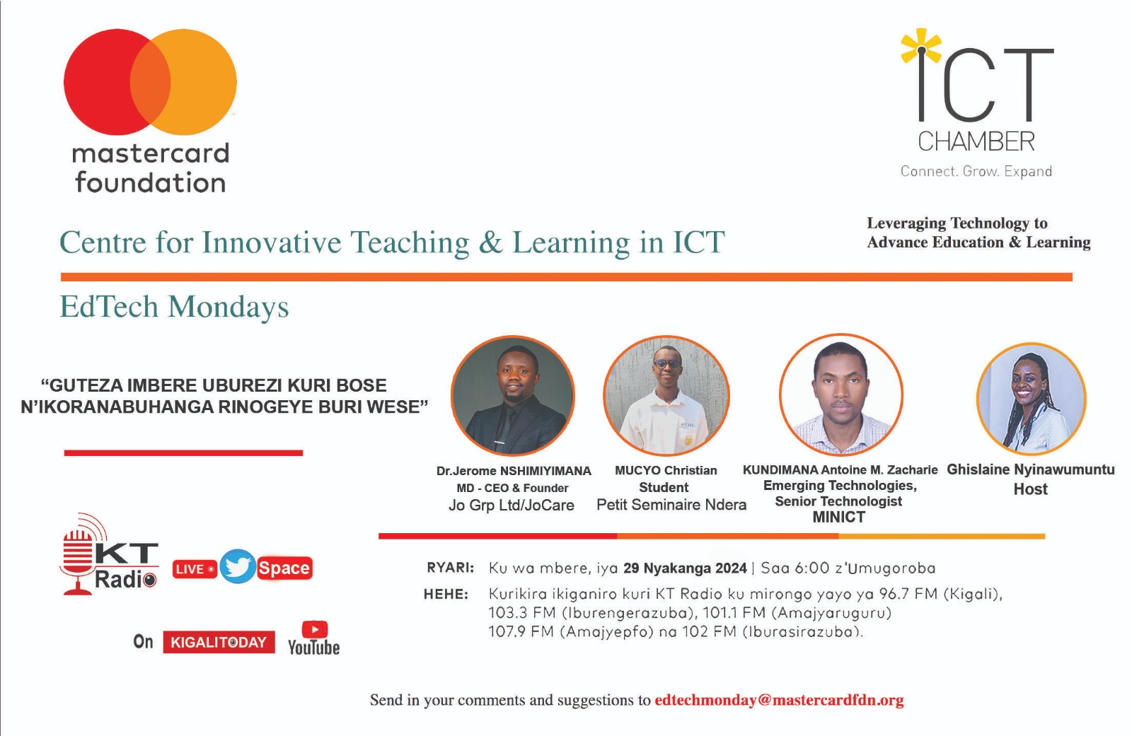Ikiganiro EdTech Monday gikorwa ku bufatanye na Mastercard Foundation kikagaruka ku iterambere mu burezi bushingiye ku ikoranabuhanga, cyatambutse kuri KT Radio Tariki 24 Kamena 2024 cyagarutse ku ‘Kwinjiza mu Burezi ikoranabuhanga rifasha kwiga binyuze mu mikino no mu masomo nyunguranabitekerezo’.