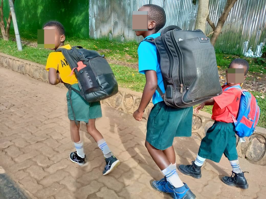Umwana witwa Ishimwe Salem wiga mu wa Kane w’amashuri abanza, ajya ku ishuri buri munsi afashe akaboko murumuna we, mushiki we na we abagenda inyuma, bose bahetse ibikapu byuzuye amakaye, ku buryo bagenda bunamye.
