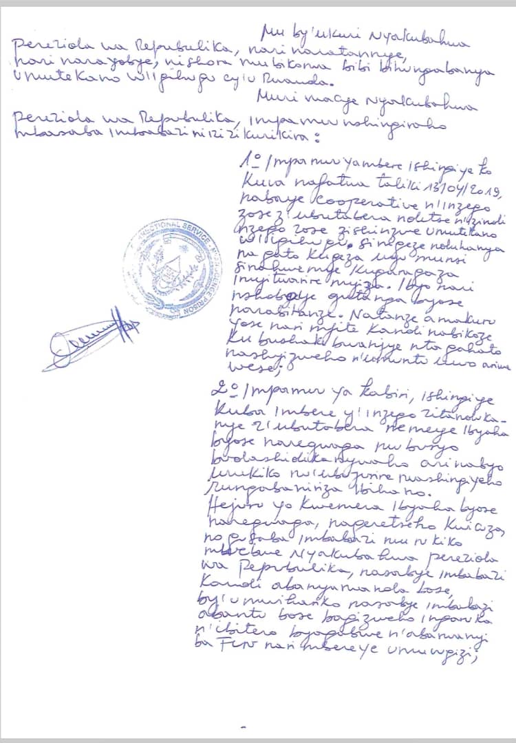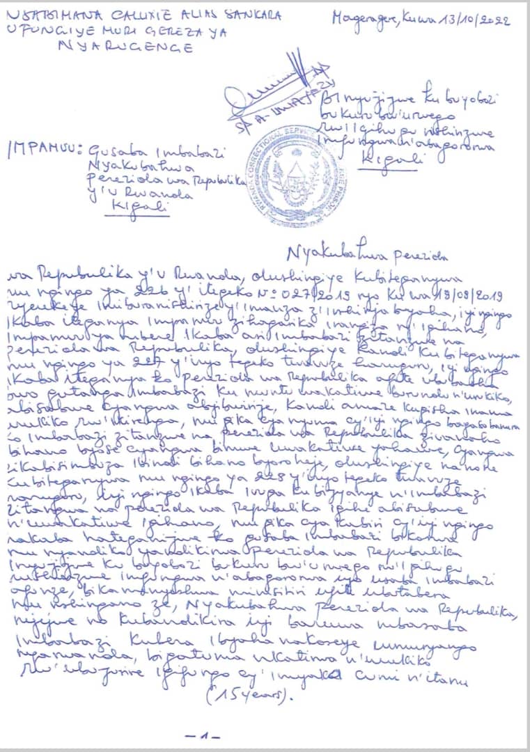 Rusesabagina Paul na Nsabimana Callixte uzwi ku izina rya Sankara, bahawe imbabazi na Perezida wa Repubulika, nyuma y’uko banditse amabaruwa bazisaba kandi bagaragaza ko bicuza ibyaha bari bafungiye birimo iby’iterabwoba.