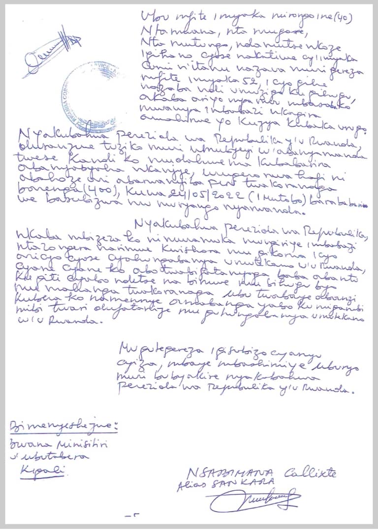 Ibaruwa Nsabimana Callixte yanditse asaba imbabazi:
