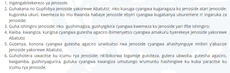 Tuributsa Abaturarwanda bose ko ibi bikorwa byose bimaze kuvugwa bigize ibyaha bihanwa n’Itegeko No 59/2018 ryo kuwa 22/08/2018 ryererekeranye n’Icyaha cy’Ingengabitekerezo ya Jenoside n’Ibyaha bifitanye isano nayo.