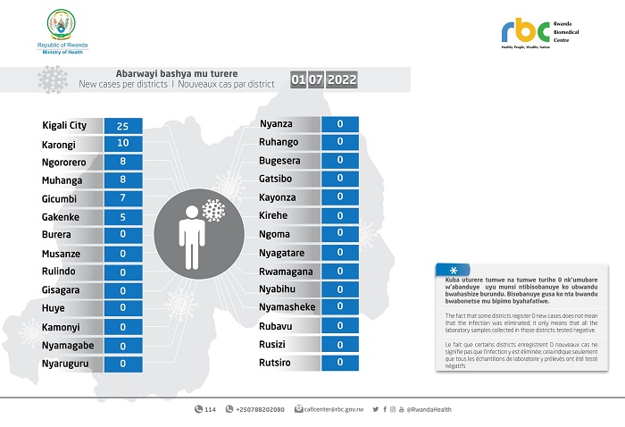 Abantu 25 muri bo babonetse i Kigali, 10 baboneka i Karongi, 8 i Ngororero, 8 i Muhanga, 7 i Gicumbi, 5 i Gakenke.
