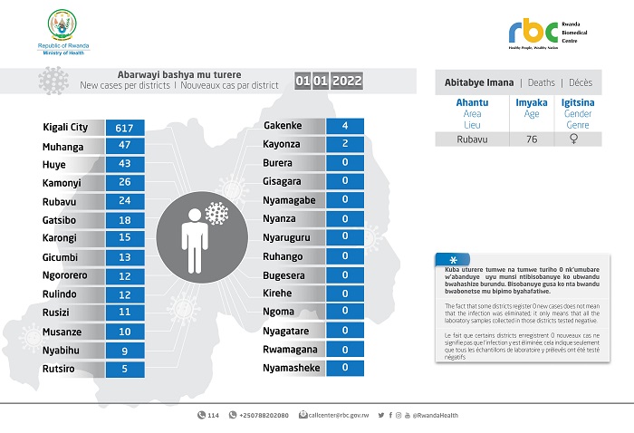 Umuntu umwe yishwe na Covid-19 kuri uwo munsi, akaba ari umugore w’imyaka 76 i Rubavu. Abashyizwe mu bitaro bashya ni 5, abarembye ni 2 nk’uko imibare yatangajwe ibigaragaza.