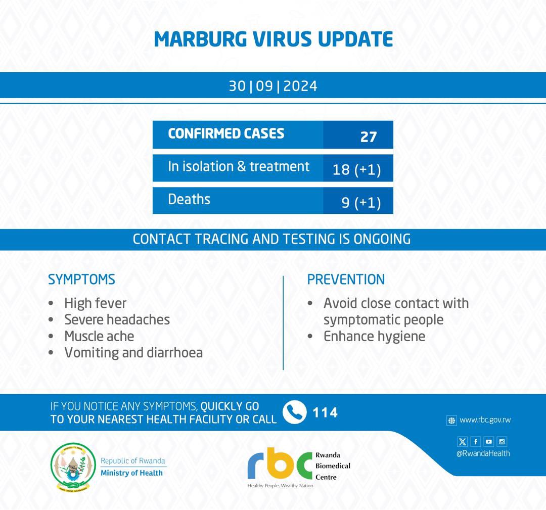 Itangazo ryashyizwe ahagaragara na Minisiteri y’Ubuzima rivuga ko abamaze kumenyekana banduye ari 27 harimo n’abapfuye, abari kuvurwa ni 18.