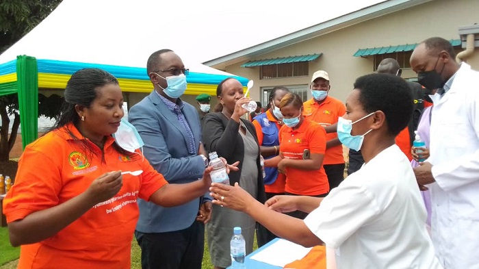 Yagize ati "Twabonye ibinini bihagije kugira ngo n’abantu bakuru babifate, mwabonye ko natwe twatanze urugero twabinyweye, ntihazagire umuturage ucikanwa, mwebwe Abajyanama b’Ubuzima muzajye urugo ku rundi".