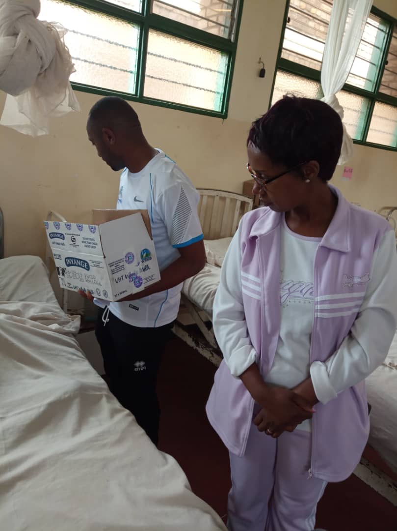 Impano batanze ni isabune, amata, umuceli, ifu y’igikoma n’isukari bahaye abarwariye muri ibi bitaro 50, batagira ababagemurira. Batanze na bombo na biswi ku bana bose bari muri ibi bitaro.