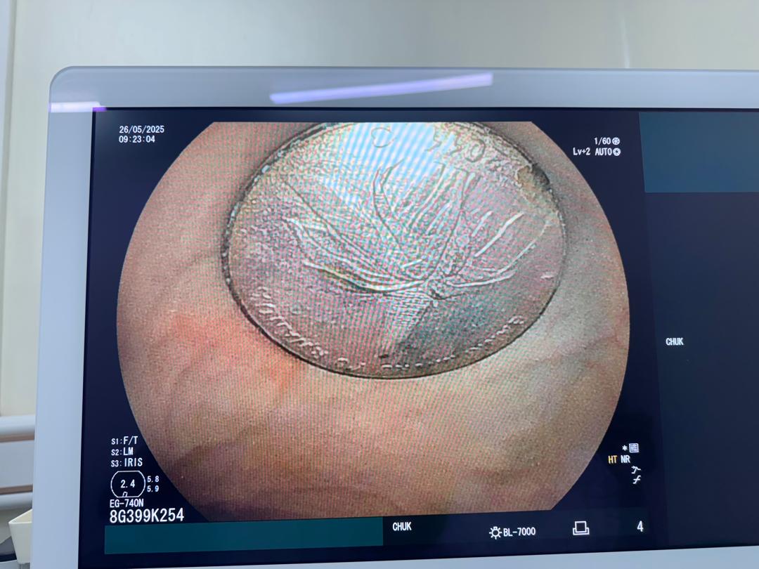 Kuri uyu wa mbere, itsinda ry’Abaganga ba CHUK muri serivisi y’ubuvuzi bw’indwara zo mu rwungano ngogozi, bakuye igiceri mu gifu cy’umwana w’amezi 18 bifashishije Endoscopy, uburyo bwo gucisha agapira mu kanwa gafite camera, kugira ngo bavure ibibazo biri mu nzira y’igogorwa.