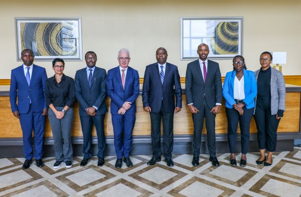 Minisitiri w’Intebe Dr. Edouard Ngirente, yakiriye Peter Sands, Umuyobozi Mukuru w’ikigega gitera inkunga urwego rw’ubuzima ku Isi, Global Fund, baganira ku gushimangira ubufatanye hagati y’u Rwanda n’iki kigega.
