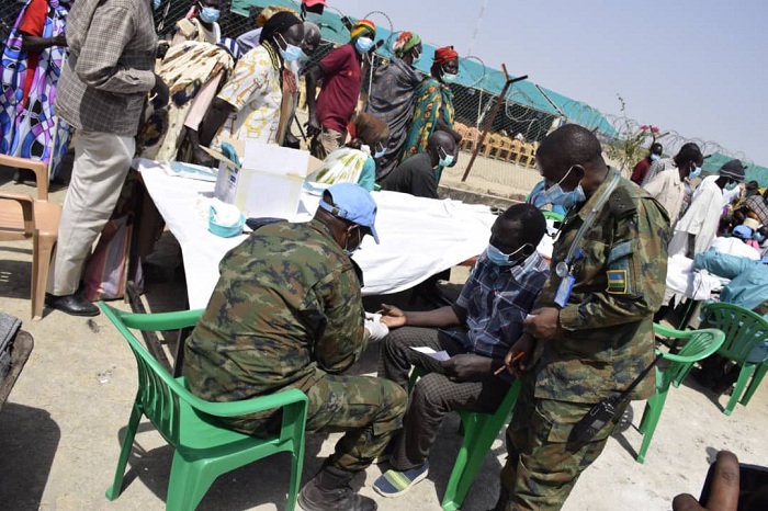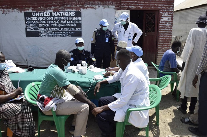 Itsinda ry’abaganga b’abapolisi n’abasirikare b’u Rwanda bari mu butumwa bw’Umuryango w’Abibumbye bwo kubungabunga amahoro muri Sudani y’Epfo (UNMISS), mu ntara ya Upper Nile mu gace ka Malakal, batangije ibikorwa byo kuvura ku buntu impunzi zavanywe mu byabo n’intambara.