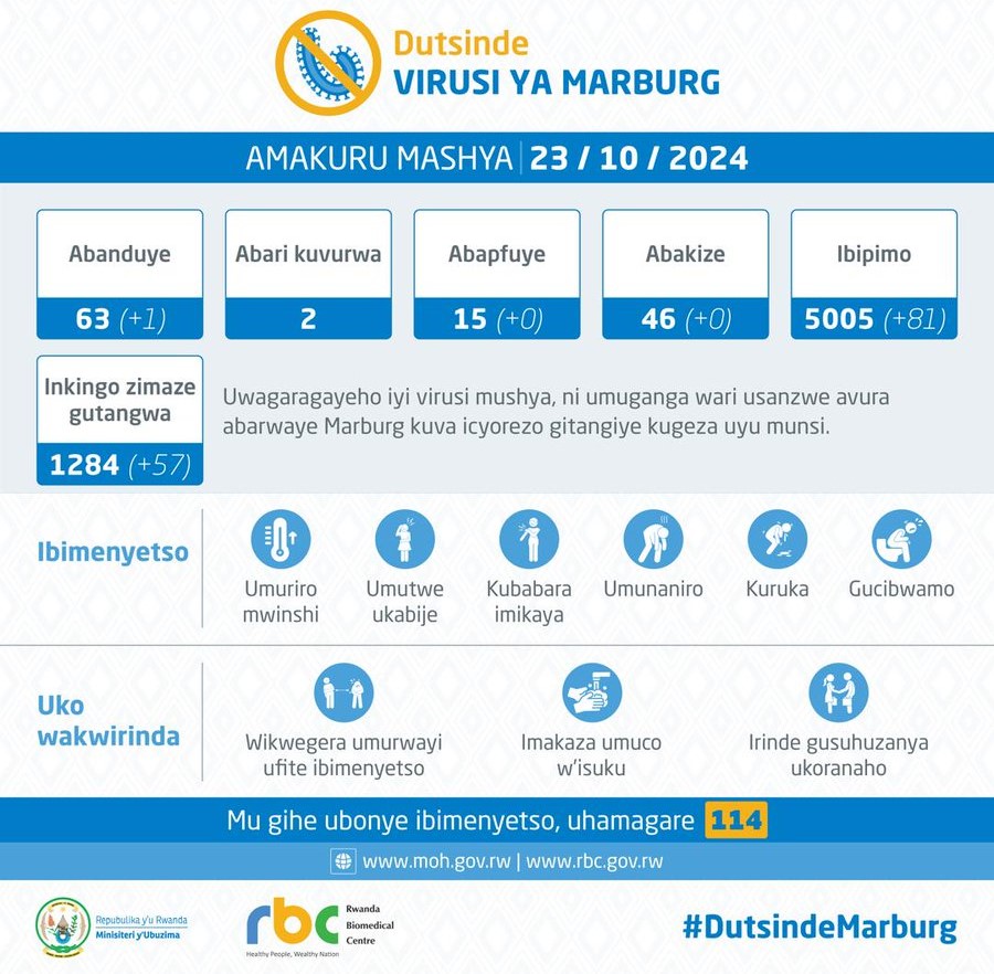 - Umuntu umwe gusa ni we uri kuvurwa Icyorezo cya Marburg