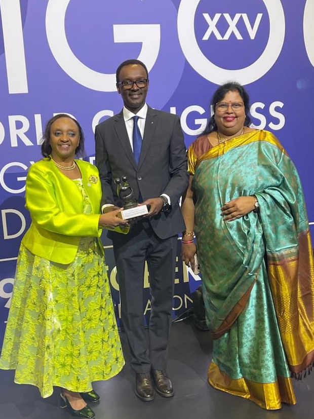 Ni igihembo yaherewe mu nama mpuzamahanga ya 25 ya FIGO yabereye i Cape Town muri Afurika y’Epfo, cyakiriwe na Ambasaderi w’u Rwanda muri Afurika y’Epfo, Emmanuel Hategeka.