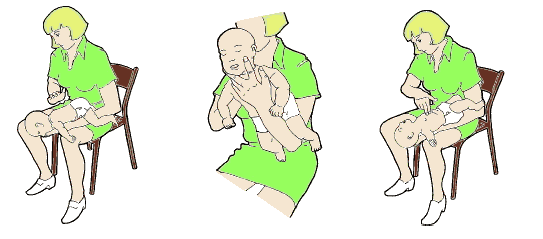 Iyo inshuro eshanu zitagize icyo zitanga, uha umwana ubutabazi bw’ibanze aramwiyegamiza, agakanda izindi nshuro eshanu hagati y’umukondo na mugabuzi,agakomeza ahinduranya bityo bityo, kugeza ubwo icyari cyanize umwana gisohoka.
