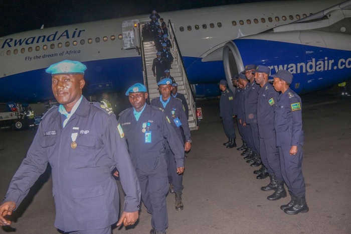 Abasimbuwe bageze ku kibuga cy’indege mpuzamahanga cya Kigali mu ijoro ryo ku wa mbere saa tanu, baje bayobowe na Senior Superintendent of Police(SSP) Alphonse Ngabonziza. Yavuze ko ubutumwa bari bamazemo umwaka bwagenze neza bakaba barakoze neza inshingano zari zabajyanye, ziganjemo kurinda abaturage ndetse n’abayobozi b’igihugu n’abakozi b’Umuryango w’Abibumbye.