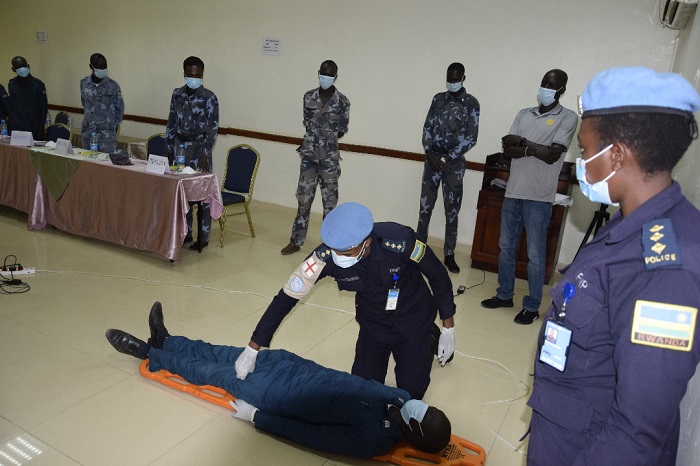 Ayo mahugurwa yatangiye ku wa Gatatu w’iki cyumweru tariki 07 Ukwakira 2020, aho abapolisi b’u Rwanda bagize itsinda ry’abaganga riyobowe na SSP Jackline Urujeni, bahuguye abapolisi 32 ba Sudani y’Epfo ku gutanga ubutabazi bw’ibanze.