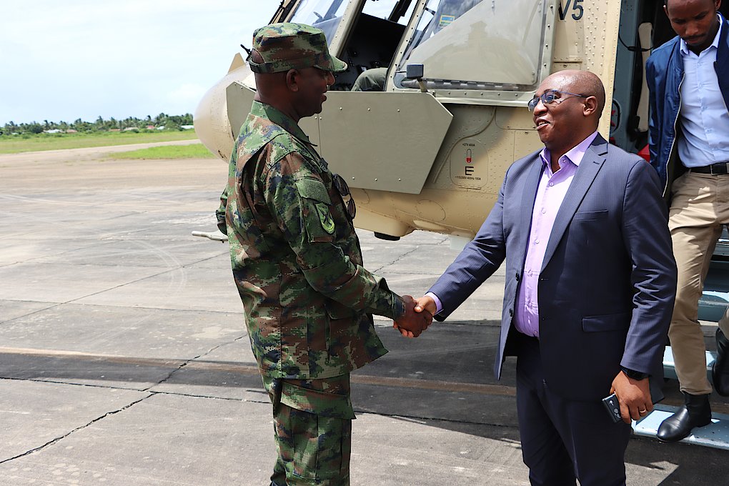 Uwo Muyobozi yakiranywe urugwiro n’Umuyobozi uhagarariye Ingabo z’u Rwanda zoherejwe muri Mozambique, Maj Gen Alex Kagame, amusobanurira uko umutekano uhagaze.