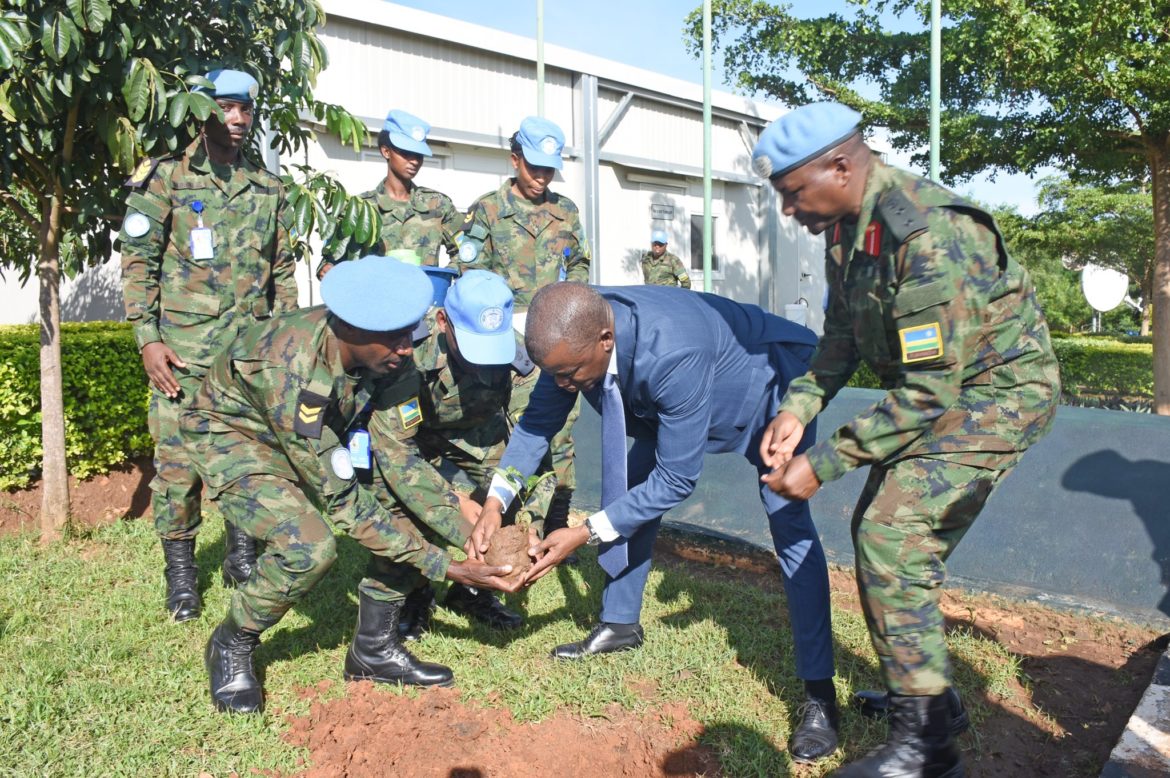 Nk’uko bigaragara mu mafoto, Maj General Vincent Nyakarundi, yateye igiti ari kumwe n’ingabo z’u Rwanda ziri muri iki gihugu mu rwego rwo gukomeza kubungabunga ibidukikije.