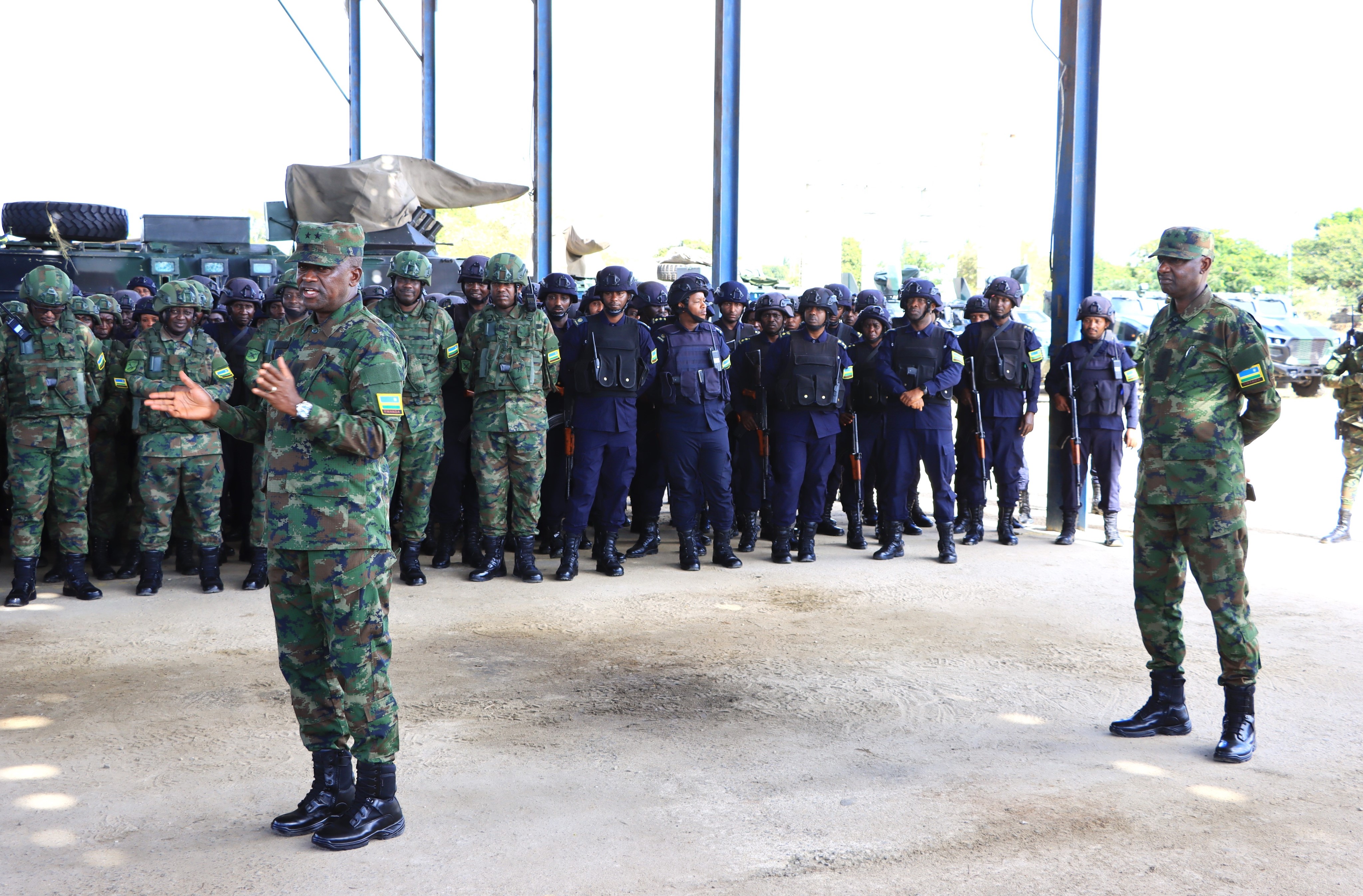 Major General Vincent Nyakarundi, Umugaba w’Ingabo z’u Rwanda zirwanira ku butaka ari kumwe na mugenzi we, Maj Gen Alberto Diago Nampele w’Ingabo za Mozambique (FADM) basuye inzego z’umutekano z’u Rwanda ziri mu Karere ka Mocimboa da Praia na Palma mu ntara ya Cabo Delgado.