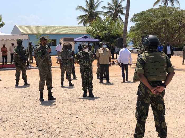 Mu myenda ya gisirikare, Perezida w’u Rwanda Paul Kagame na mugenzi we wa Mozambique Filipe Nyusi baganiriye n’Ingabo na Polisi b’u Rwanda bari mu butumwa bwo guhashya imitwe yitwaje intwaro muri Mozambique bafatanyije n’Ingabo z’icyo gihugu.