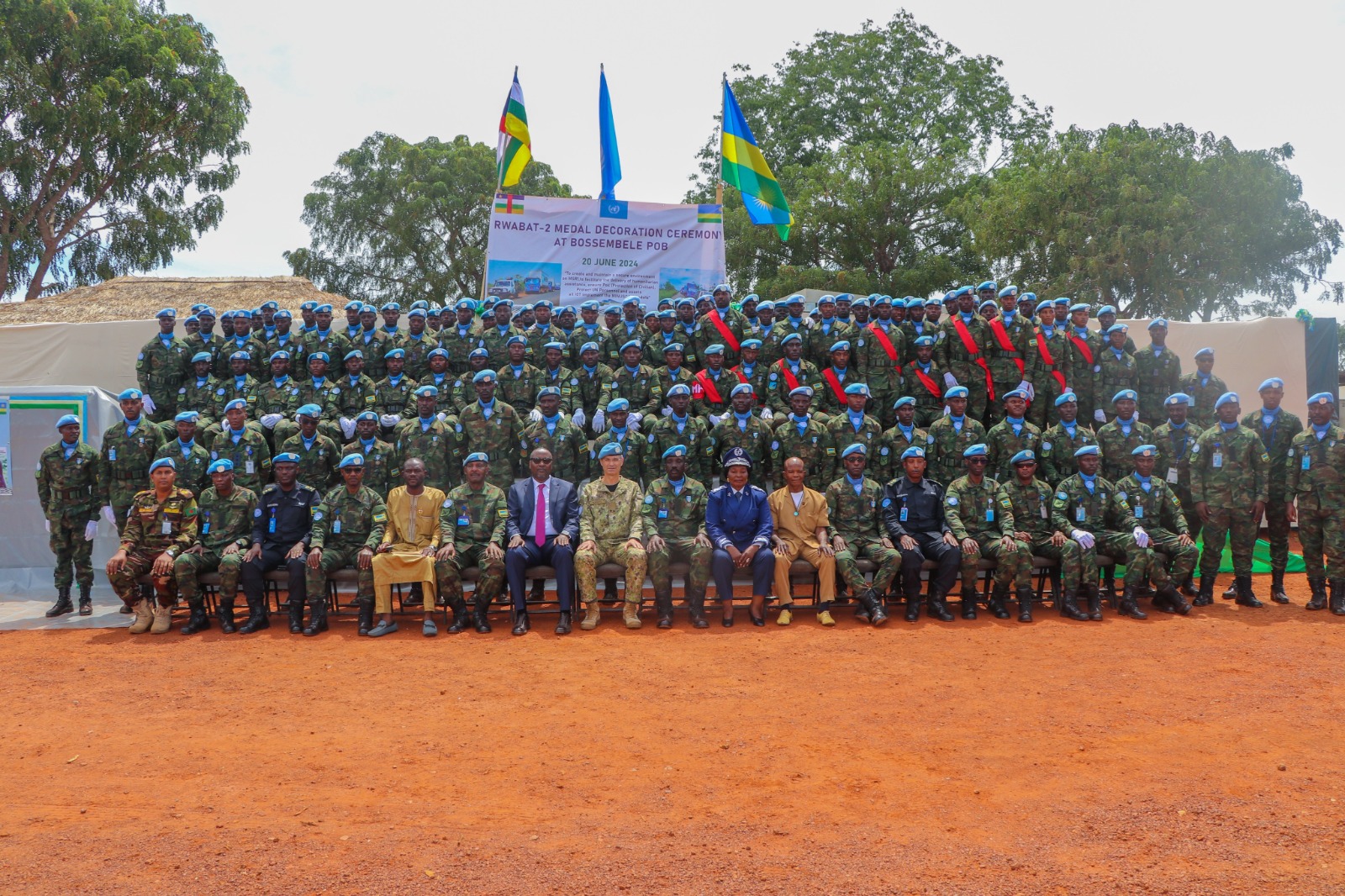 Ibirori byo kwambika izi ngabo z’u Rwanda imidali byabayae kuwa Kane tariki 20 Kamena 2024, ahitwa Bossembele, muri Perefegitura ya OMBERA M’POKO, ahasanzwe ari ibirindiro bya Rwabat-2.