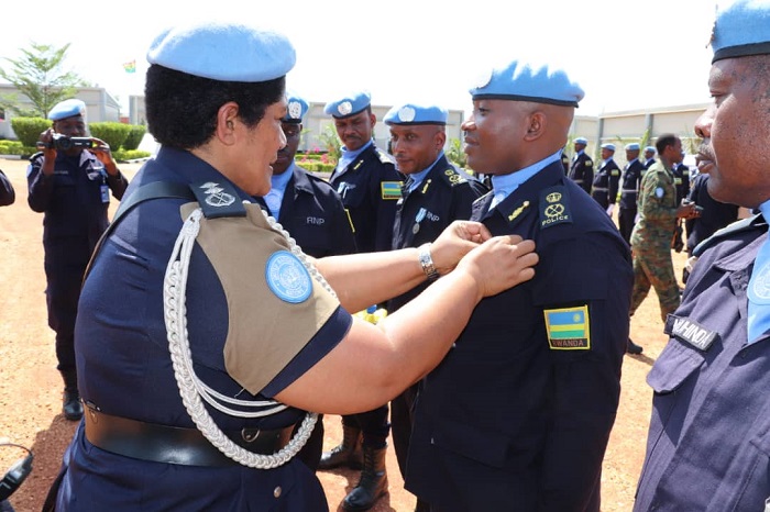 U Rwanda rufite amatsinda atatu muri iki gihugu agizwe n’abapolisi 560, muri bo harimo amatsinda abiri agizwe n’abapolisi 160 ari nayo yambitswe imidali y’ishimwe. Itsinda rimwe riyobowe na ACP Claude Tembo irindi tsinda rigizwe n’abagore riyobowe na Senior Superintendent of Police (SSP) Jackline Urujeni.