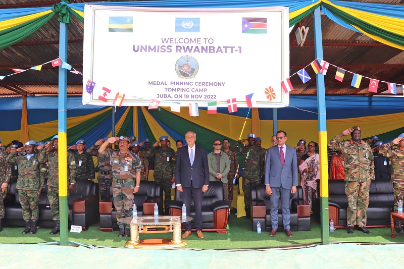 Ingabo z’u Rwanda ziri mu butumwa bw’Umuryango w’Abibumbye bwo kubungabunga amahoro muri Sudani y’Epfo (UNMISS), zambitswe imidari y’ishimwe na ONU. Uyu muhango wabaye tariki 19 Ugushyingo 2022 mu mujyi wa Juba, ahari icyicaro cy’ingabo z’u Rwanda (Rwanbatt1).