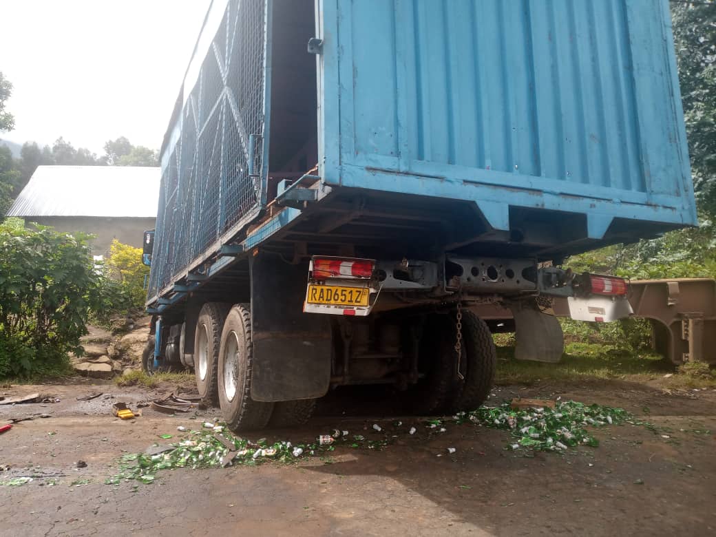 Ikamyo igenewe kwikorera imodoka n’imashini ziremereye ya Sosiyete ikora imihanda izwi nka NPD yagonganye n’ikamyo ya BRALIRWA igenewe kwikorera inzoga, izo kamyo zombi n’ibyo zari zipakiye birangirika ndetse abantu babiri barakomereka.