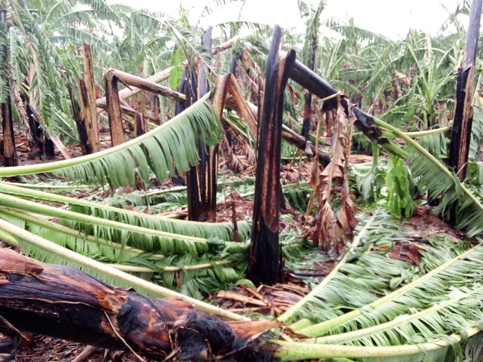 Hegitari ziri hagati y’eshanu na zirindwi zihinzeho urutoki mu Kagari ka Rugarama mu Murenge wa Mukama na zo zangiritse.