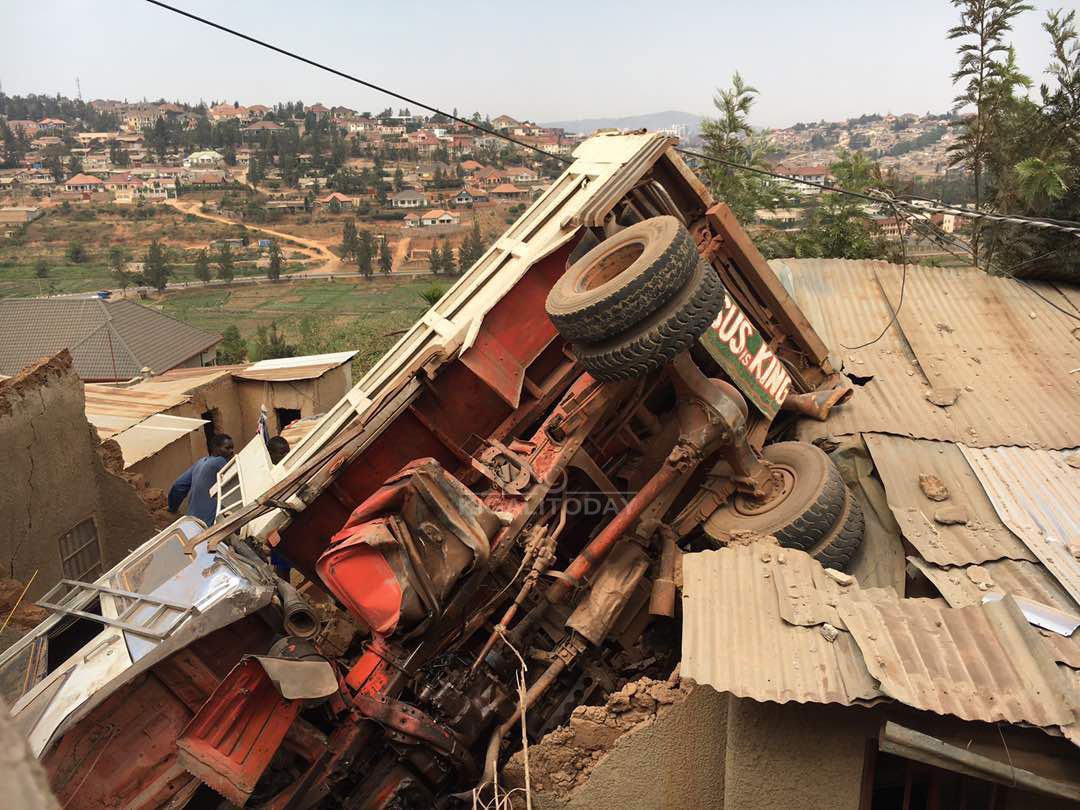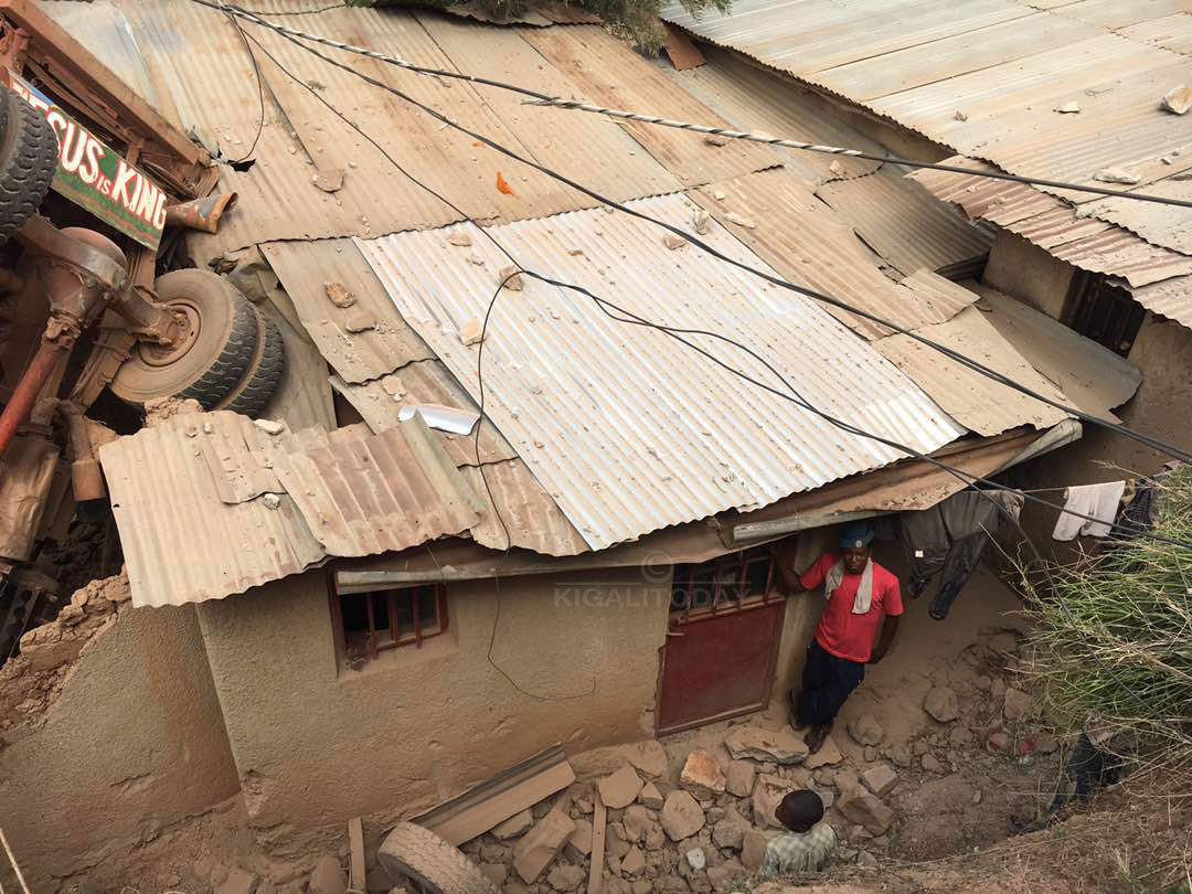 Iyo kamyo ifite puraki RAB 175R, yahise ikomeza irenga umuhanda, igwa munsi yawo hejuru y’inzu irayisenya, yinjiramo imbere.